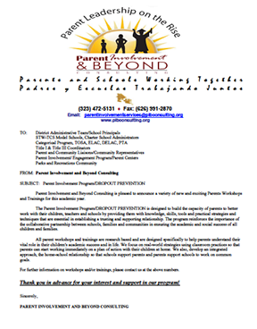 Parent Involvement and Beyond Consulting is pleased to announce a variety of new and exciting Parents Workshops and Trainings for this academic year.