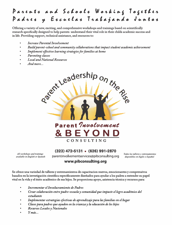 Offering a variety of new, exciting, and comprehensive workshops and trainings based on scientifically research specifically designed to help parents understand their vital role in their child's academic success and in life. Providing support, technical assistance, and resources to: